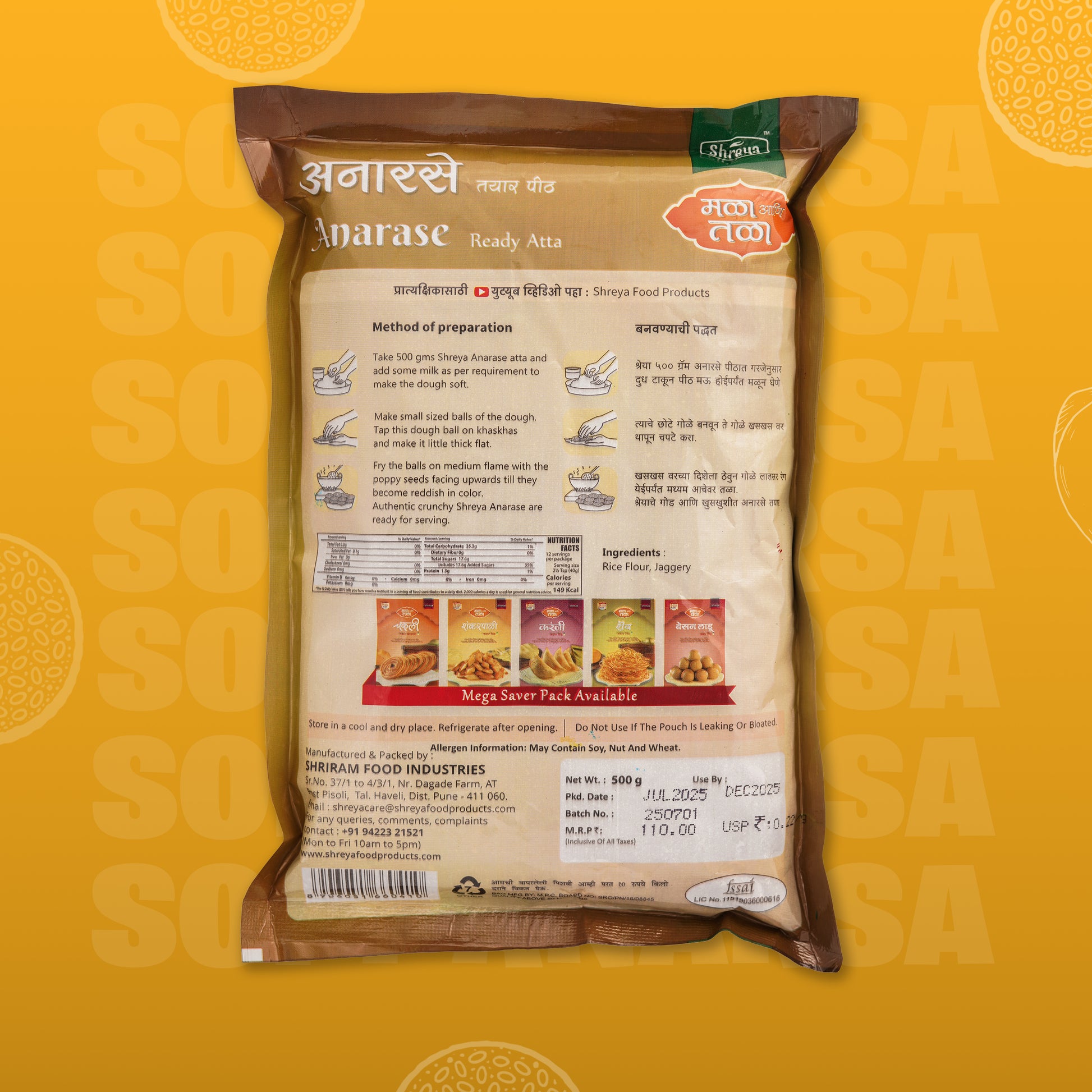 Shreya Anarse Ready Mix Flour is crafted from hygienic and premium-quality ingredients, offering the authentic taste of homemade anarse with ease. This specially prepared flour ensures light, crispy, and perfectly textured anarse every time—just mix, shape, and fry!