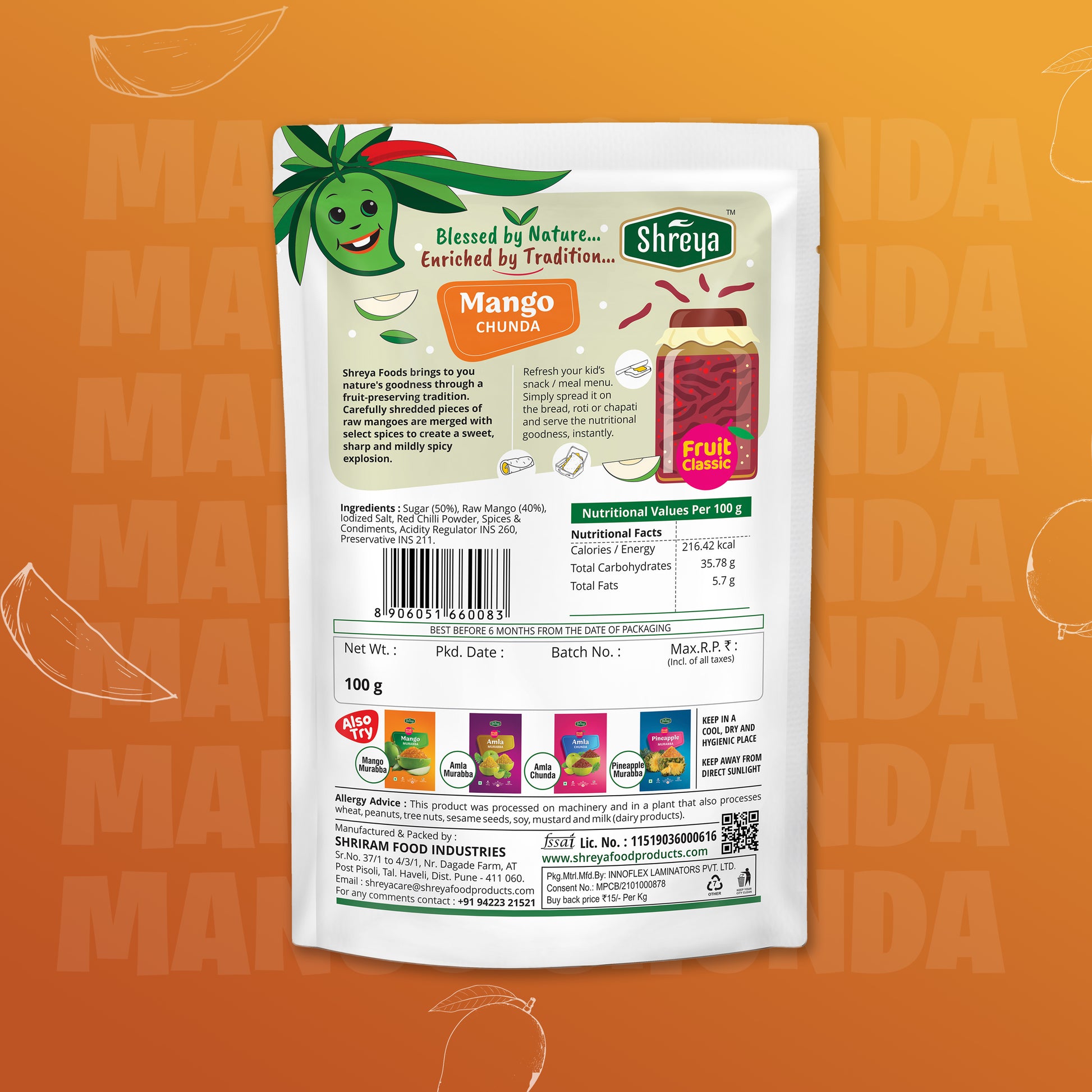 Shreya Foods brings to you nature’s goodness through a fruit-preserving tradition. Carefully shredded pieces of raw mangoes are merged with select spices to create a sweet, sharp & mildly spicy explosion.