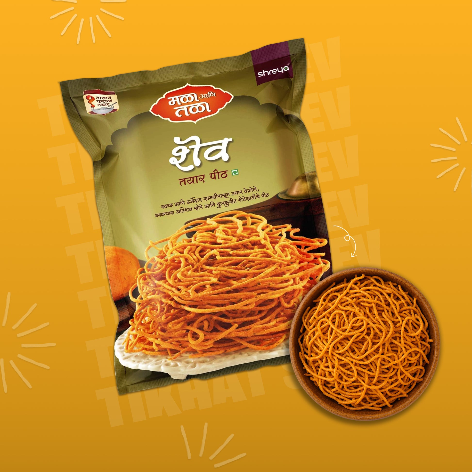 Prepare crispy, crunchy, and fresh Shev at home with Shreya's Shev Ready Mix Flour. Made from premium quality and hygienic ingredients, this ready-to-use flour ensures delicious shev with perfect crispiness every time. Just mix, press, and fry — and your festive snack or daily munching delight is ready in minutes!